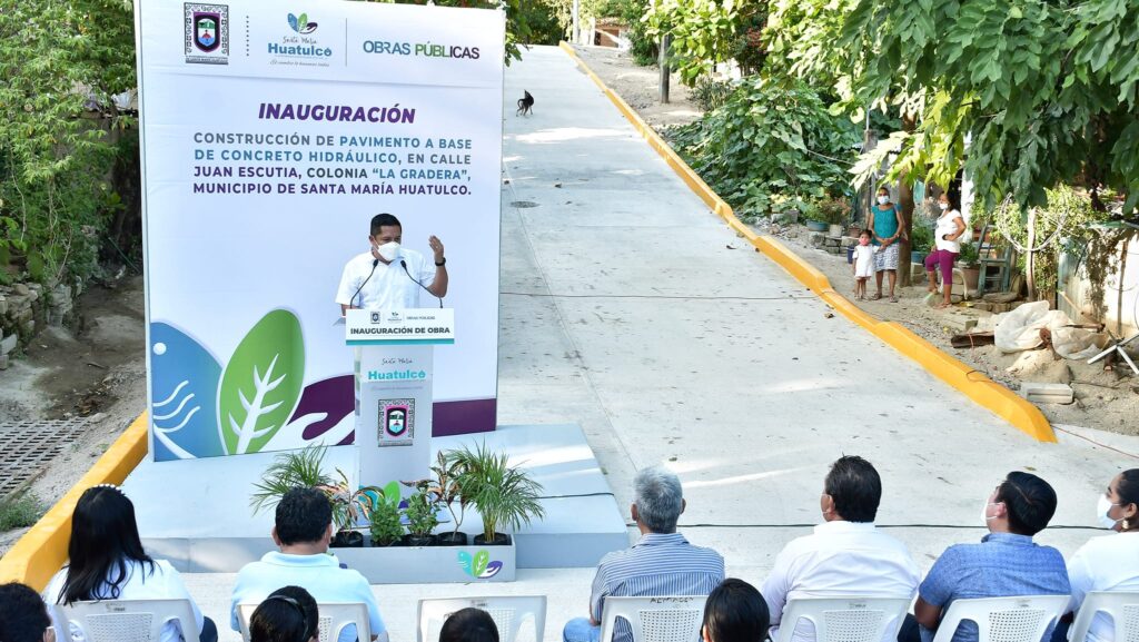 «En nuestra administración hemos atendido el tema de infraestructura pública con pavimentación de calles que conectan a nuestra población de una forma segura y de fácil tránsito, tal como lo hemos logrado en la colonia La Gradera, con la construcción de la calle Juan Escutia, la cual forma parte del centro de nuestra cabecera municipal y hoy es una calle digna para las y los ciudadanos que circulan diariamente por el lugar» – Giovanne González García, Gobierno de Huatulco