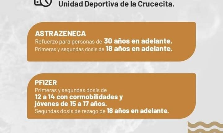 Del 21 al 23 de febrero, se estarán aplicando primeras dosis y refuerzos de la vacuna contra el covid-19, en la unidad deportiva de Santa María Huatulco y de la Crucecita a partir de las 9:00 AM.