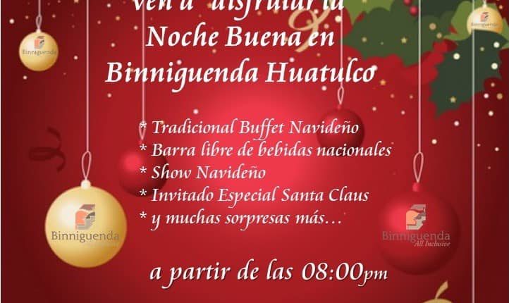 Binniguenda All Inclusive Huatulco se viste de gala para recibir una de las noches más mágicas de todo el año La Noche Buena, contaremos con show navideño y muchas sorpresas.