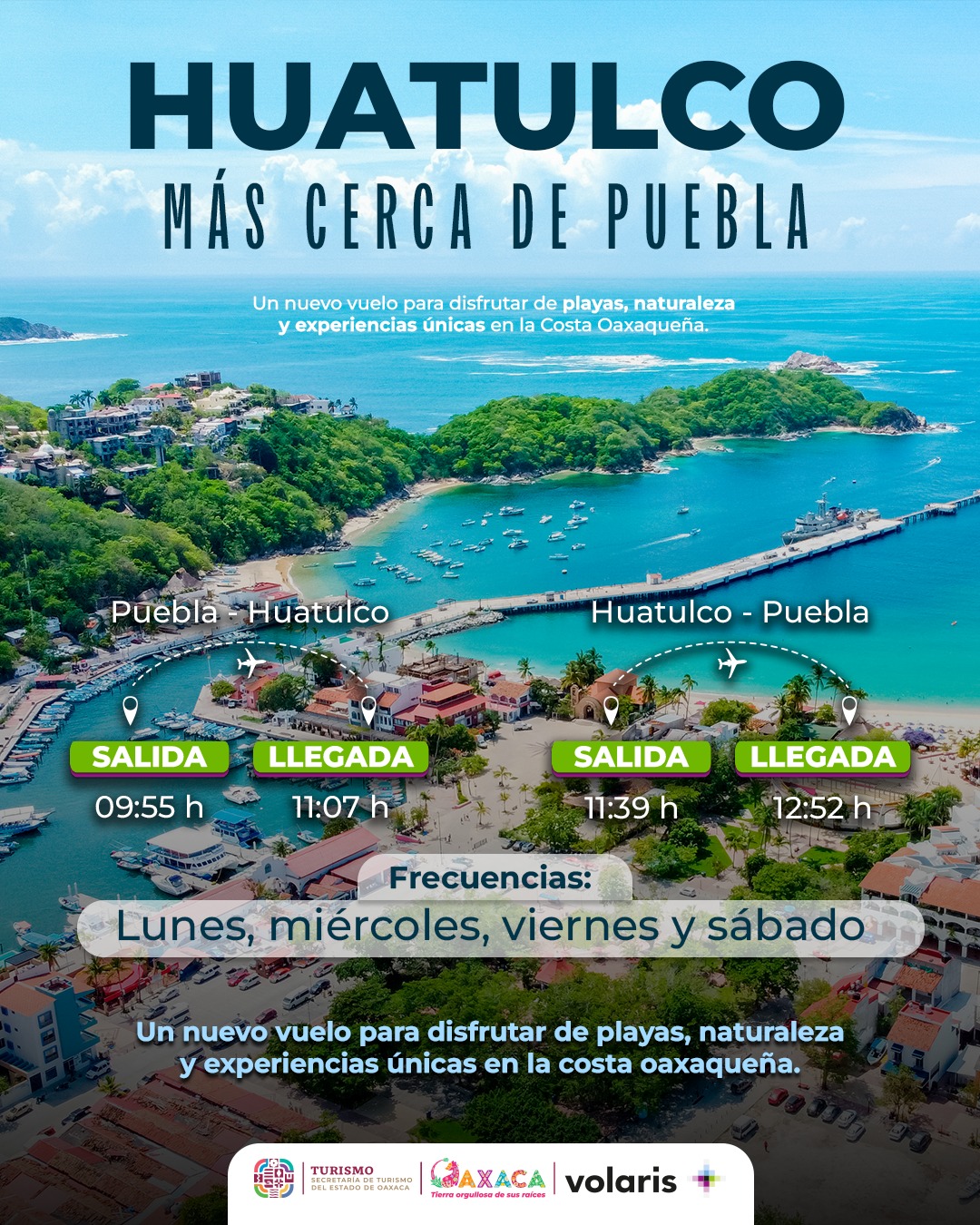 A partir del 1 de junio, la aerolínea Volaris iniciará operaciones con un vuelo directo desde Puebla hacia Huatulco, facilitando la conexión entre ambos destinos.