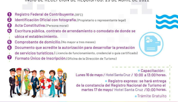 Recibe la capacitación por parte de SECTUR el 16 de mayo y recibe tu RNT el 17 de mayo; para mayor información comunícate al 📞9585850362 o acude a las oficinas de la Dirección de Turismo ubicadas en la planta alta de la Agencia Municipal de Santa Cruz Hutulco.